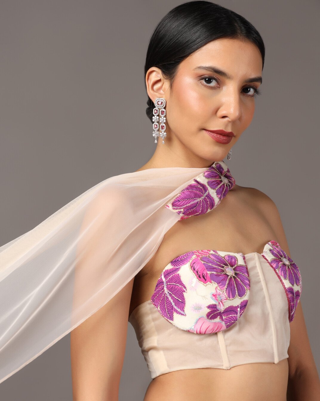 Fabric : Crepe – skirt , Organza- Corset & Dupatta
